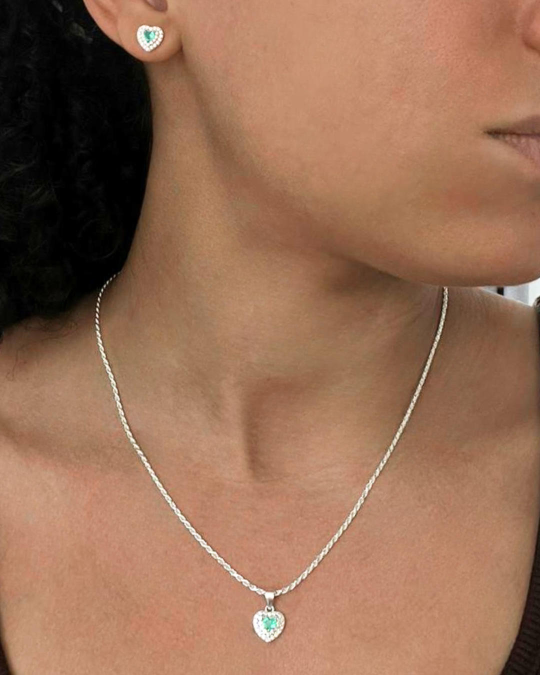 • Modelo: Conjunto Coração Verde Turmalina Cravejado