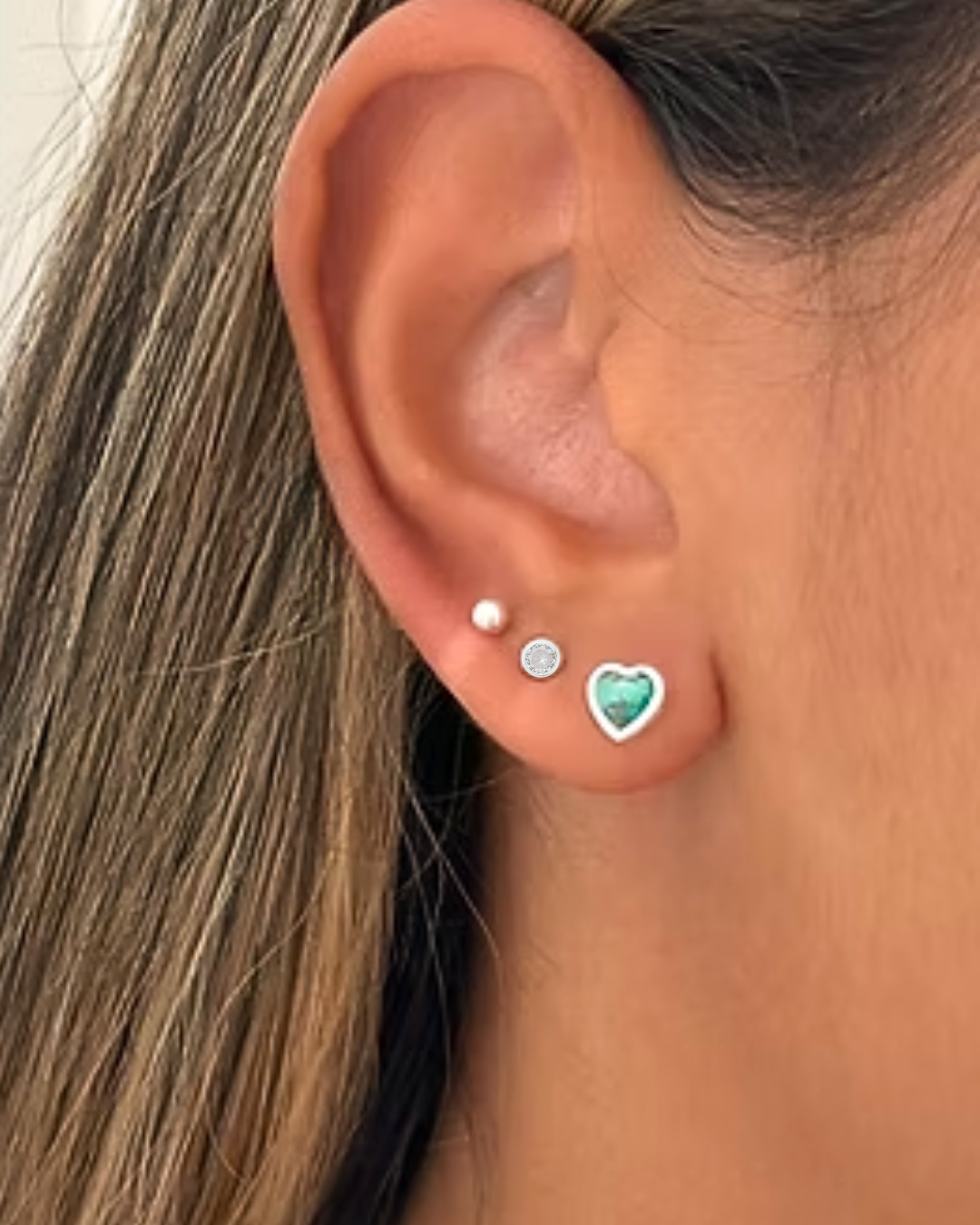 • Modelo: Trio de Brinco Coração Verde, Bolinha e Zircônia